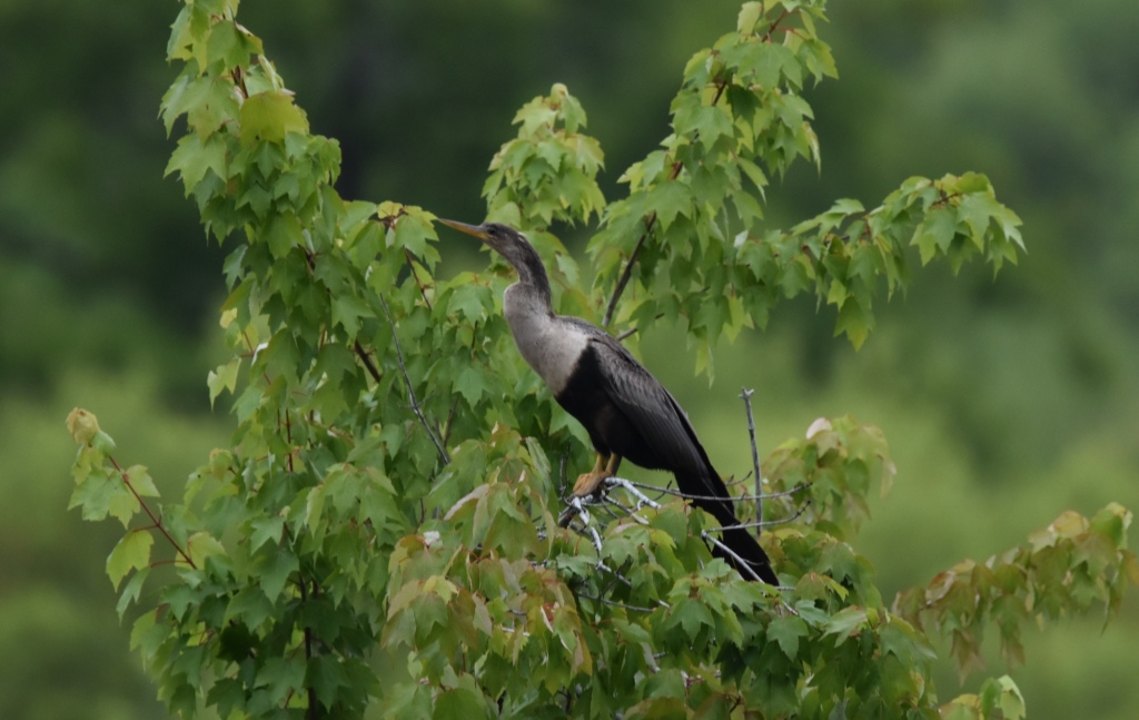 Jonathan Snyder photographed an anhinga perched in a red maple tree near the lake at Stumpy Lake in Virginia Beach. Anhingas are related to cormorants and look similar but lack the hook on the end of their beak.