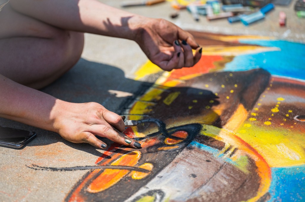 The extraterrestrial sightings extended along two blocks with nearly 150 participants kneeling over the concrete path. The theme was “Out of this World!,” and artists were encouraged to depict their favorite space creatures or scenes from movies and books.