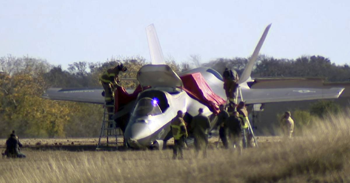 The Marine Corps variant of a fighter jet, known as a F-35B, took a nose dive and spiraled after its wheels briefly touched down on the shared runway at Naval Air Station Joint Reserve Base in Fort Worth. Video taken by people who were watching the plane come in show it slowly descending in a straight line as smoke appears in the rear of the aircraft before the nose digs into the runway and the jet spins to a stop.