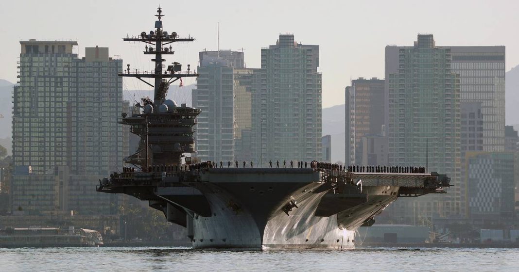 SAN DIEGO — A fire broke out aboard a U.S. Navy aircraft carrier, resulting in minor injuries to nine sailors, military officials said Wednesday.