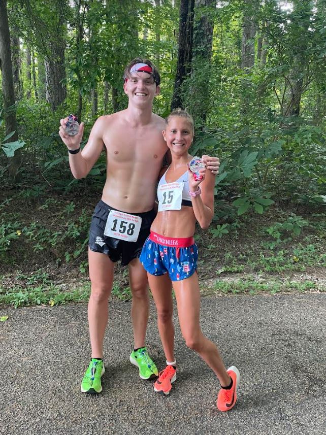 Despite her fast sub-30-minute time, Bauer was just taking it easy, and hardly broke a sweat. She emailed, “My coach and I decided that I was going to run this race like a tempo run. I went out nice and relaxed and then was able to descend my pace each mile from there. It was a beautiful course and so much fun to run on the historic battlefield of the Battle of Yorktown. It was great to see all the locals out running on the 4th of July. My friend, Eli, placed 2nd and we ran a lot of the race together. I’m so glad that he decided to do the race with me. We both decided that we were going to run it for fun and see how we did. I did not get back to Williamsburg from Florida until about mid-June. Living in Florida for a whole year, though, I am very used to this hot and humid weather. I thrive in this environment so I am thankful that we have weather like this!”