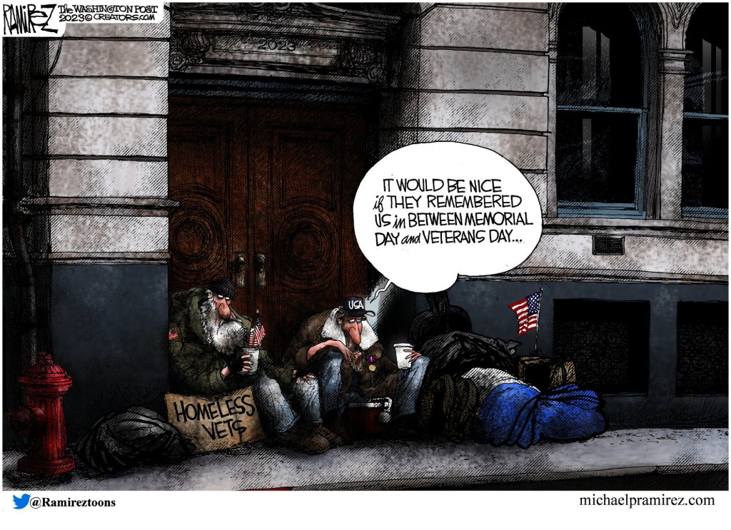 Home News Michael Ramirez: Homeless Vets News Michael Ramirez: Homeless Vets By admin - July 2, 2023 0 49 FacebookTwitterPinterestWhatsApp Cartoon by Michael Ramirez for July 3, 2023. RELATED ARTICLESMORE FROM AUTHOR News White man will stand trial for shooting Black teen Ralph Yarl, who went to wrong house, judge rules – Daily Press News Two ex-Proud Boys leaders get some of longest sentences in Jan. 6 Capitol attack – Daily Press News Shooting near Virginia Beach high school football game shows how gun violence infects our communities – Daily Press LEAVE A REPLY Cancel reply Please enter your comment! Please enter your name here You have entered an incorrect email address! Please enter your email address here Save my name, email, and website in this browser for the next time I comment.