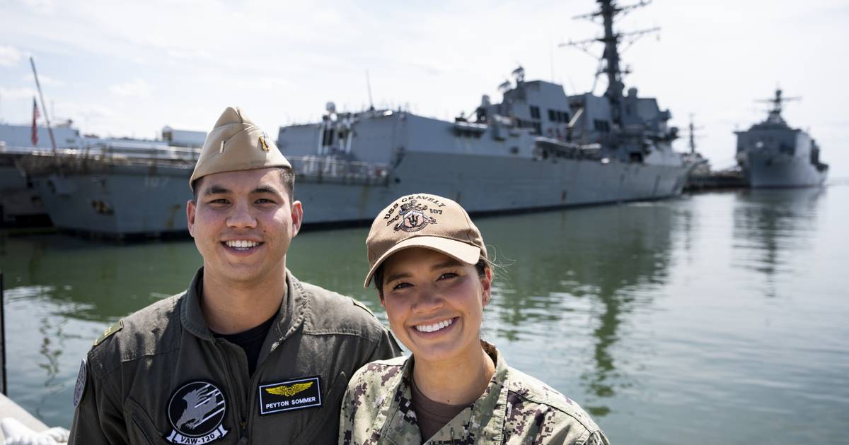Lael Sommer, 25, is a navigator aboard the USS Gravely, a Norfolk-based destroyer. Peyton Sommer, 23, is a naval flight officer assigned to the VAW-120 Hawkeyes at Naval Station Norfolk. Both are Naval Academy graduates, just like their mother. Their father, retired Capt. John Sommer, also is a Naval Academy graduate.