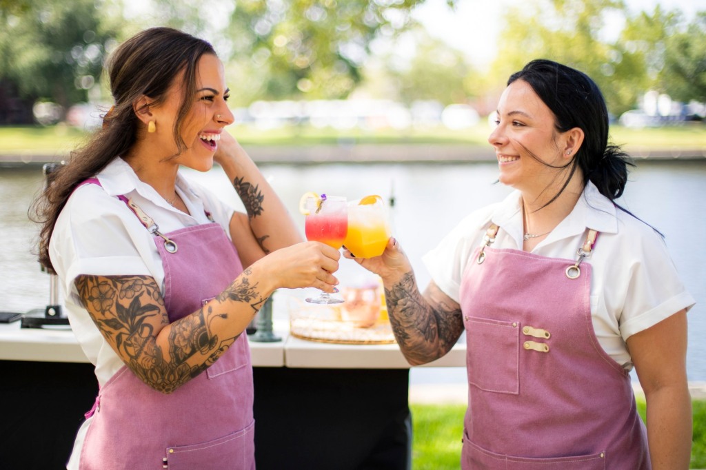At each event, they each wear a signature uniform of a pink apron over a white button-up. This, Sisson said, is a nod to their work as a women-owned business.