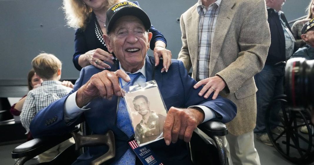 They were visiting thanks to the Soaring Valor Program, a project of actor Gary Sinise’s charitable foundation dedicated to aiding veterans and first responders. The program arranges trips to the museum for World War II veterans and their guardians.