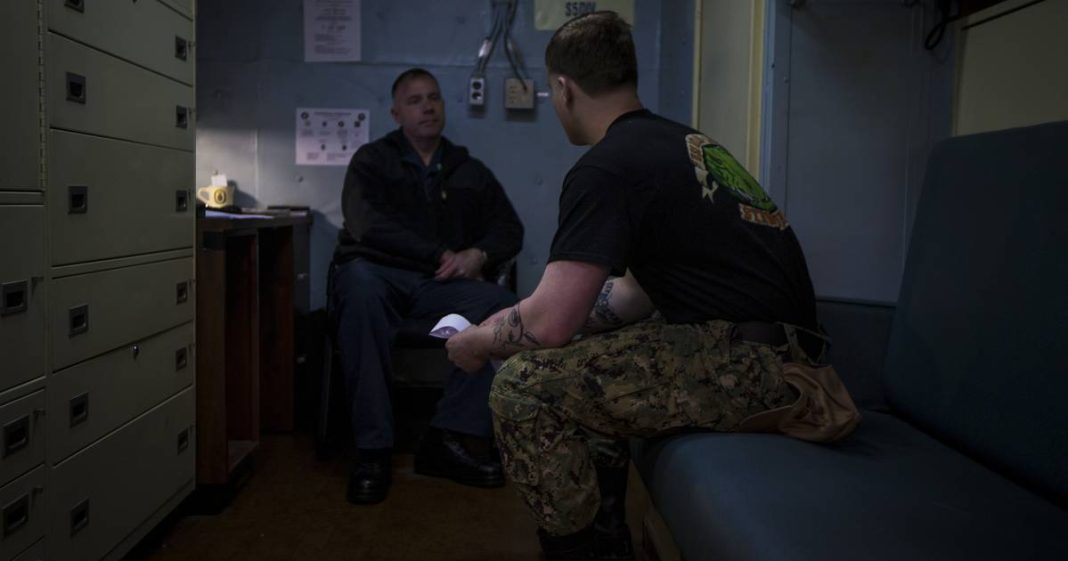 NAVAL STATION NORFOLK — On Navy ships docked at this vast base, hundreds of sailors in below-deck mazes of windowless passageways perform intense, often monotonous manual labor. It’s necessary work before a ship deploys, but hard to adjust to for many already challenged by the stresses plaguing young adults nationwide.